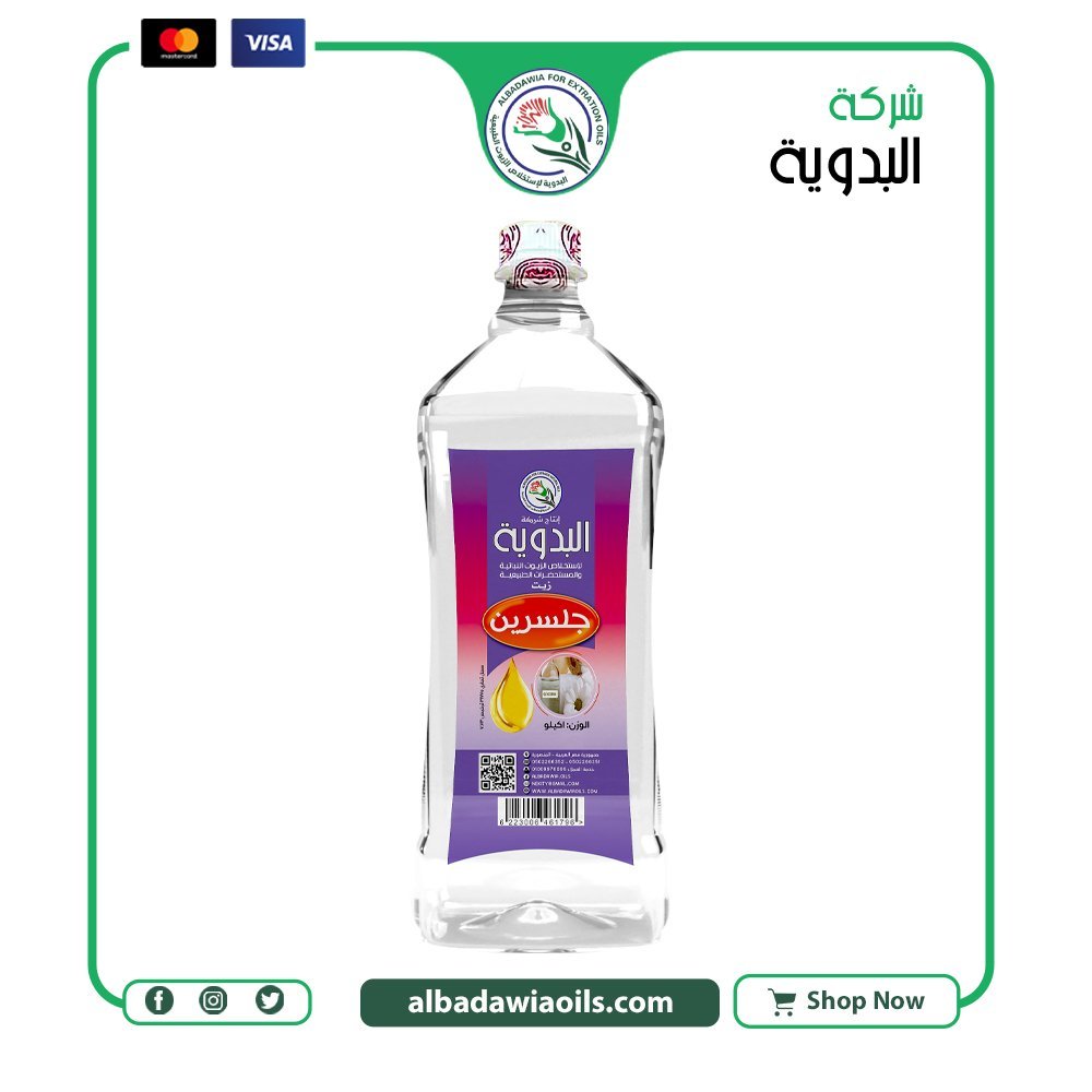 جلسرين 1 كيلو حجم اقتصادي من معاصر البدوية مناسب للاستخدام المتكرر في العناية أو التصنيع أو الاستخدام التجاري حسب طبيعة المنتج.