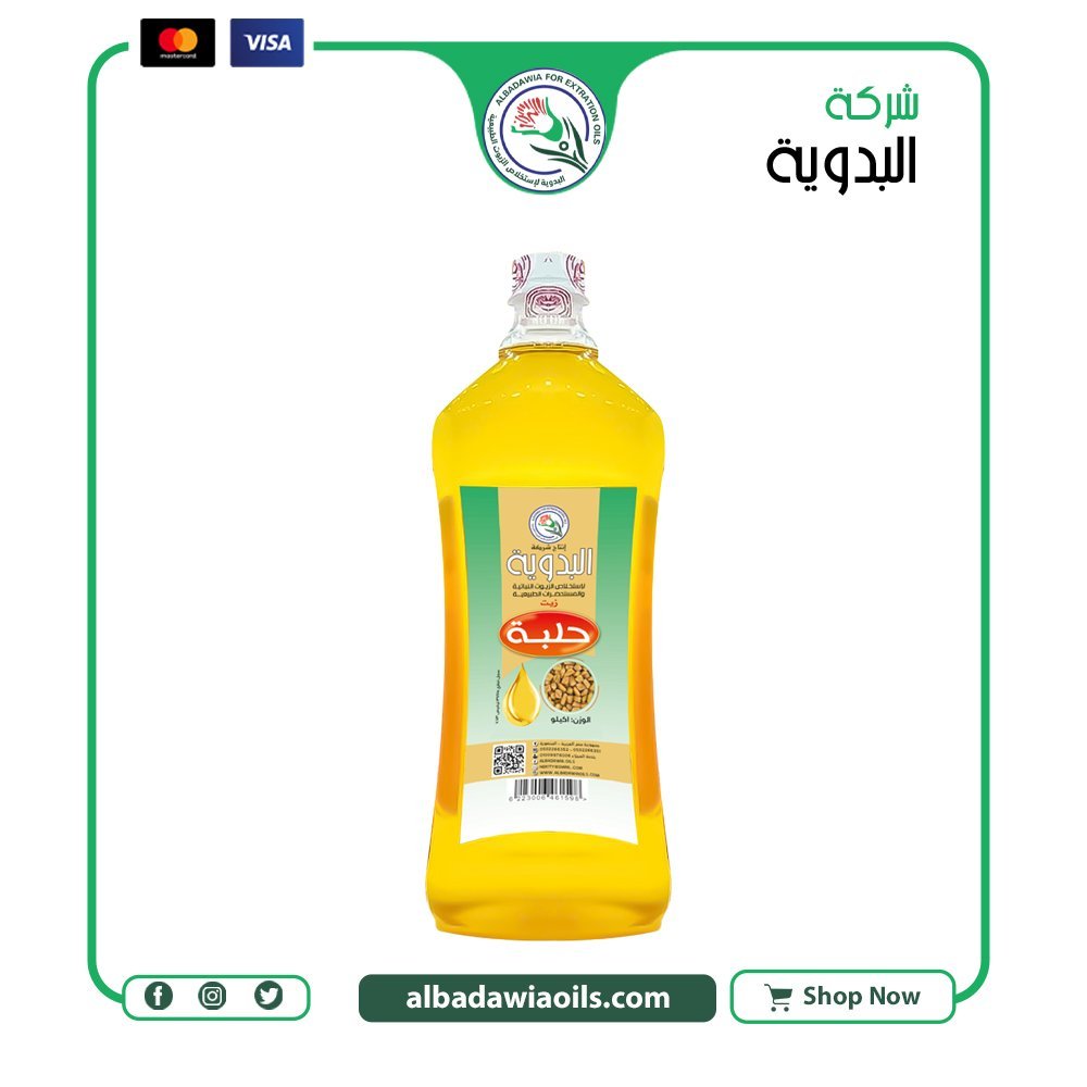 زيت حلبة 1 كيلو حجم اقتصادي من معاصر البدوية مناسب للاستخدام المتكرر في العناية أو التصنيع أو الاستخدام التجاري حسب طبيعة المنتج.