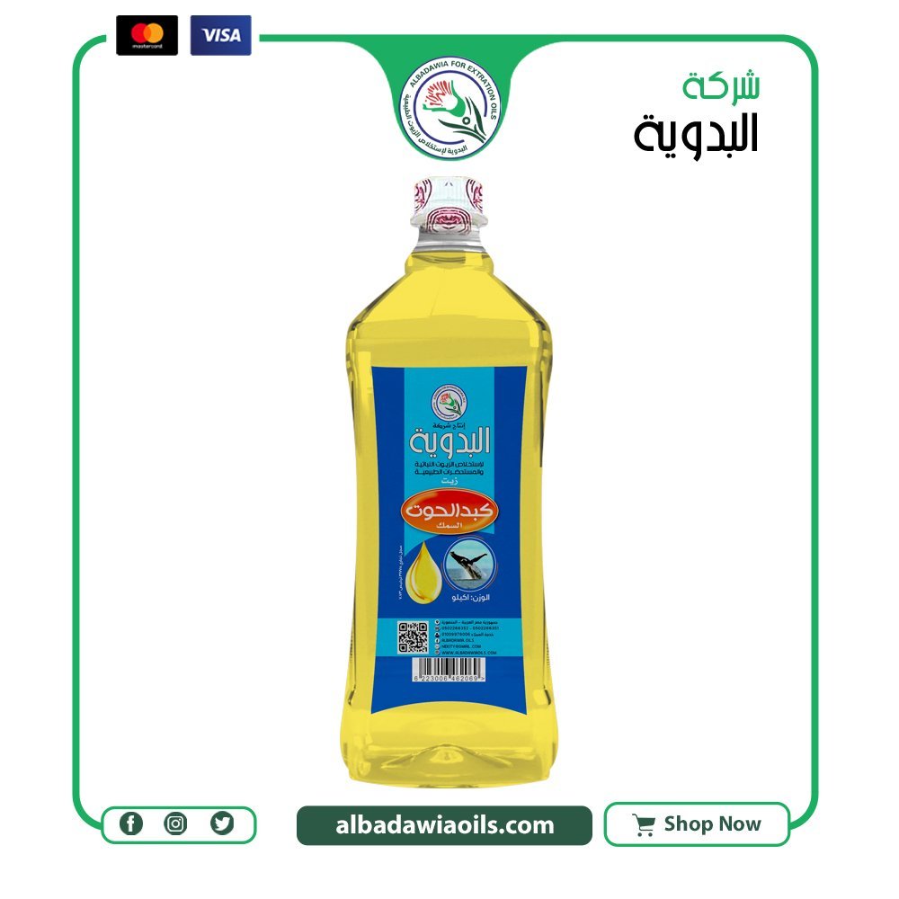 زيت كبد حوت 1 كيلو حجم اقتصادي من معاصر البدوية مناسب للاستخدام المتكرر في العناية أو التصنيع أو الاستخدام التجاري حسب طبيعة المنتج.